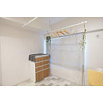 部屋干しが出来るよう、北側の洋室を思い切って洗面脱衣室にし、洗面・洗濯・部屋干しまでできるようにしました。また、隣にウォークインクローゼットを設けることで、洗濯物の収納も楽にできるようにしました。