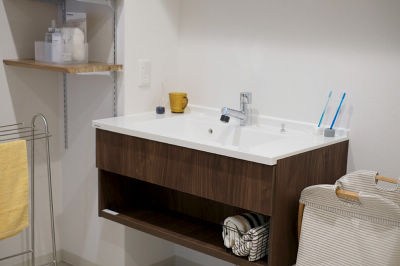 洗面台はフロートタイプにし、見た目をすっきりとさせました。