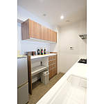 4LDKから2LDKへ 一部屋をゆったりとり収納スペースをたっぷりもうけました 花粉症や雨の時に洗面室で室内干しができるように