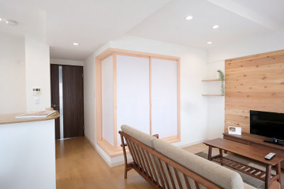 和室を6帖から4帖半にし、リビングを広げました。ソファを置いても窮屈さがなくなり、ゆとりができました。