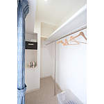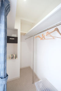 アクセントウォールの奥には大きな物も置けるウォークインクローゼット