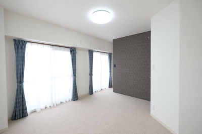 北側の2つの洋室を一部屋にしました。ベッドを置いても余裕のある寝室です。