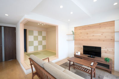 和室を6帖から4帖半にし、リビングを広げました。ソファを置いても窮屈さがなくなり、ゆとりができました。