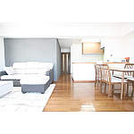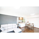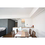 元々隣接和室だったが引戸部分を壁にして空間のアクセントに 家具のレイアウトもすっきり納まり使いやすくなりました キッチンもオープンにし開放的に 部屋に変化をつけることによってオシャレに