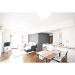 元々隣接和室だったが引戸部分を壁にして空間のアクセントに 家具のレイアウトもすっきり納まり使いやすくなりました キッチンもオープンにし開放的に 部屋に変化をつけることによってオシャレに