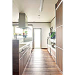 オープン型のカウンターキッチンは、収納力と使いやすさで大満足。ゆとりのある配置で家事動線を確保しています。