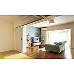洋室を取り除くことで、日が降り注ぐ明るく開放的なリビングを創出。和室の引き戸を開放すればリビングと一体化し、LDKがさらに大空間に。
