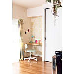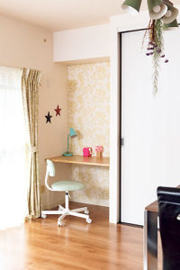 クローゼットの奥行きを利用し、ダイニングの一角にお子様の勉強机を。家族が自然とLDKに集まります。