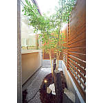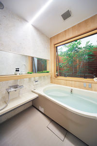 外構と浴室をあわせてプランニングし、坪庭の見えるお風呂が完成。