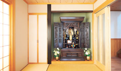 リフォームのきっかけになった仏壇の設置場所は、玄関収納だったスペースを活用して確保。