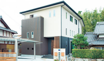 和モダンに生まれ変わった外観。背後の竹林が、家の中から見える風景に趣を与えます。