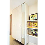 大型シューズボックスは、床から浮かせて圧迫感が出ないように。