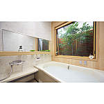 外構と浴室をあわせてプランニングし、坪庭の見えるお風呂が完成。