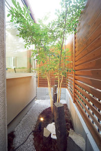外構と浴室をあわせてプランニングし、坪庭の見えるお風呂が完成。