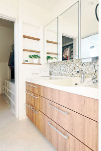 洗面ドレッシングは上質感な雰囲気の「ラシス」を選び、モザイクタイルをプラス。