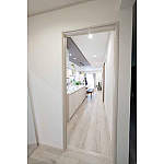 新築した頃から駐車場と玄関の位置関係に不便さを感じられており、雨の日などは荷物を持っていると大変とのことでしたが、リノベーションで裏口からキッチンへすぐ入れる動線にしたのがポイントです。またそれに伴い水廻りの位置を変えました。LDK全体がホワイトでまとめ、ポイント使いでアクセントも入れました。工事後、遊びに来たお友達から「お店みたいですてき」と言われたお話を奥様から聞きその時の笑顔が今でも覚えています。使い勝手もお掃除もラクになりとても喜んでもらえたリノベーションでした。