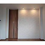 入口脇の壁は表面に凹凸のあるエコカラットを貼り、照明を当てて更に高級感を演出しています。