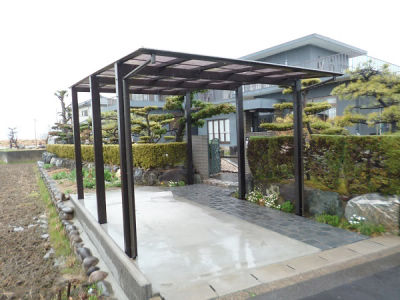 ■娘さん世帯の車が増えるため、庭に駐車スペースを造り、カーポートを