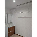 使い勝手を考え、パイプハンガーや棚を配置しました。