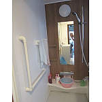 床はFRP製になり滑りにくく、出入り口から洗い場にかけてはL型の手すりを設置しました。体が安定し、安心して入浴していただけます。