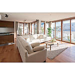 一番思い入れが強かったのは「緑が見える暮らし」。その想いを実現すべく、庭に面した南東側を天井いっぱいの全面窓にする、思い切ったプランをご提案。長期優良住宅耐震等級3を取得して耐震性能を確保し、全面窓と26帖の開放的なLDKの両方を実現しました。