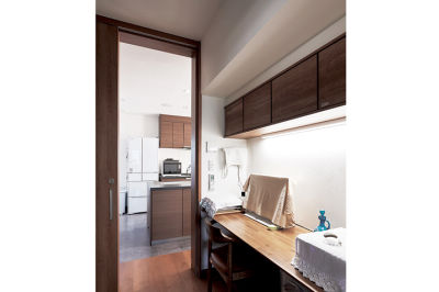 奥様の作業スペース兼家事室。パソコンなど生活感のあるものはこちらへ。
