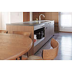リビングに加え、キッチンなど水廻りにも床暖房を設置。シンク側のカウンター下の家電収納で見た目もすっきり。ダイニングテーブル横なので便利です。