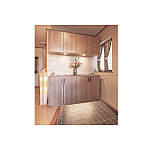「家具のようなインテリア性の高いキッチン」をというのが奥様からのご要望でした。インテリアや小物、雑貨集めがお好きな奥様のリクエストでカップボードはセパレート型にし、その間に間接照明を埋め込んだ飾り棚を設けました。お気に入りの小物たちが美しく照らされ、キッチンの雰囲気を高めます。扉柄や壁紙などは、ダイニングのインテリアに合わせてセレクトしたことで、まるでダイニングキッチンをまとめてリフォームしたような一体感が生まれました。