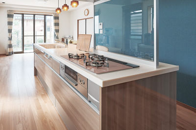 キッチンとリビングが近くなり、作業をしていても家族と会話ができるようになったと、奥様からお喜びの声をいただきました。