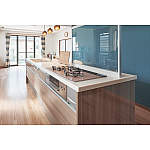 家事がはかどる、アイランドキッチンの回遊動線。食事はカウンターで。ダイニングテーブルをなくし、キッチンもリビングも広く使えるように。