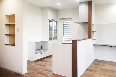 キッチンからお子様との会話が楽しめます。みんなで過ごすLDKには増設した窓から自然光がたっぷりと。和・洋室、玄関を仕切っていた壁を取り、LDKのスペースを十分に確保しました。