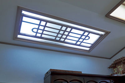 ご両親の思い出を生かす工夫のひとつとして、天窓に欄間を再利用。
