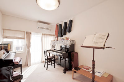 デザイン性の高い照明や家具、調湿・消臭が期待できるウールカーペットをセンスよくコーディネイト。