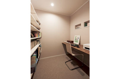 使用したいテーブルなどの家具や照明器具、カーペットなどはすでに決まっていたので、それに合わせて設備やインテリアのカラーをコーディネイトしました。キッチン扉柄は木目調。壁紙などは白。アクセントはグレーで。色数を多くせずに、シンプルに上品にまとめました。各空間に収納スペースを確保し、使用する場所で収納できるように。散らかりにくくなり、ストックも把握しやすく不要な買い物も防げます。