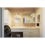 収納は「適材適所の収納」がおすすめです。例えば洗面室で使うものは洗面室に収納する。散らかりをなくし、片付けもしやすくなります。