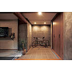 壁面は好みのモルタル仕上げに。趣味のロードバイクをいつでも気兼ねなく整備できます。