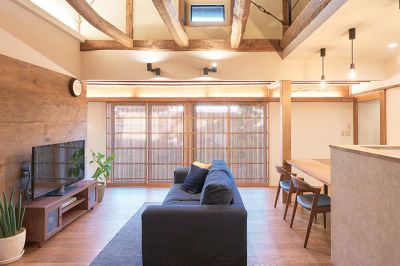 | テーマ | 団らんキッチン、古民家再生、自然素材、吹き抜け、耐震 |