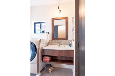 家族と会話を楽しみながら料理ができる対面キッチン。手元を隠す壁は、小柄な奥様に合わせて高さを決めました。