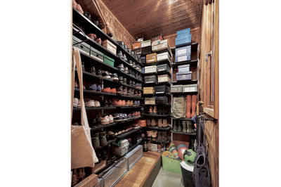 5人の靴がしっかり収納できる大容量のシューズクローゼット。オープン棚で探しやすい。