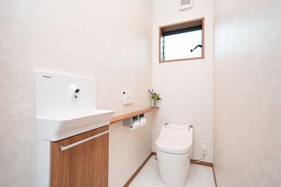 1階の納戸はご希望の和室へ変更。お客様をお迎えしたときの動線として、玄関から和室までの間にトイレと、手洗いを兼ねた洗面化粧台を設けました。