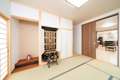 ご希望だった仏間・客間として使用できる和室。法事などの来客時の事を想定して、リビングともつながるようになっています。