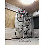 自転車タワーを設置。有孔ボードにはヘルメットやカバン、工具など一式掛けられます。