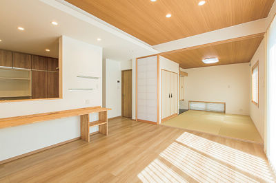 天井に木目調クロスを採用。ナチュラルなやさしい雰囲気に空間が包まれます。