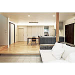 吹き抜けの陽光が降りそそぐ土間と収納をすべて引き戸に収めた遮るものがないキッチンでLDKは広々と開放的とお喜びです。人の回遊性にもこだわり、キッチン奥から洗面室・脱衣室・浴室・ランドリーへと一本の動線でつながるように配置。ぐるりと回ってリビングに抜けられ、ご夫婦の暮らしがラクになったと太鼓判をいただきました。