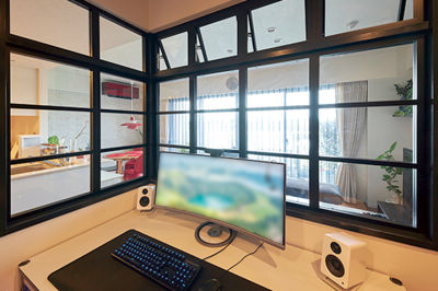 個室で集中もできるし、室内窓で家族ともつながっていられる理想の仕事環境です。この部屋にこもっていても、窓のおかげで家族とほどよい距離でつながっていられます。「今忙しいかな。邪魔しちゃいけないかな」とお互いの様子が見えるので、余計な気遣いやストレスが減りました。また声も気軽にかけやすくなり、娘との会話も増えましたよ。