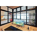 個室で集中もでき、室内窓で家族ともつながっていられる理想の仕事環境。