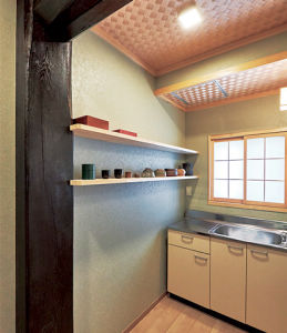 古き良き味わいを残しながら、棚の高さは茶道具の高さに合わせるなど使い勝手にも配慮。