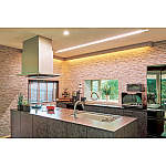 壁を照らす照明の光の演出で上質な雰囲気に。光の色を変えて、バーのような空間を楽しむことも。みんなが集える美しい佇まいのキッチンとなりました。