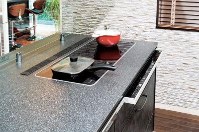 マルチワイドIHはフラットで、油汚れもさっと拭くだけでキレイになるとお喜びです。