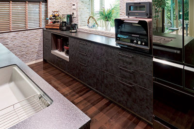 キッチンに見えないデザイン、収納も重宝。